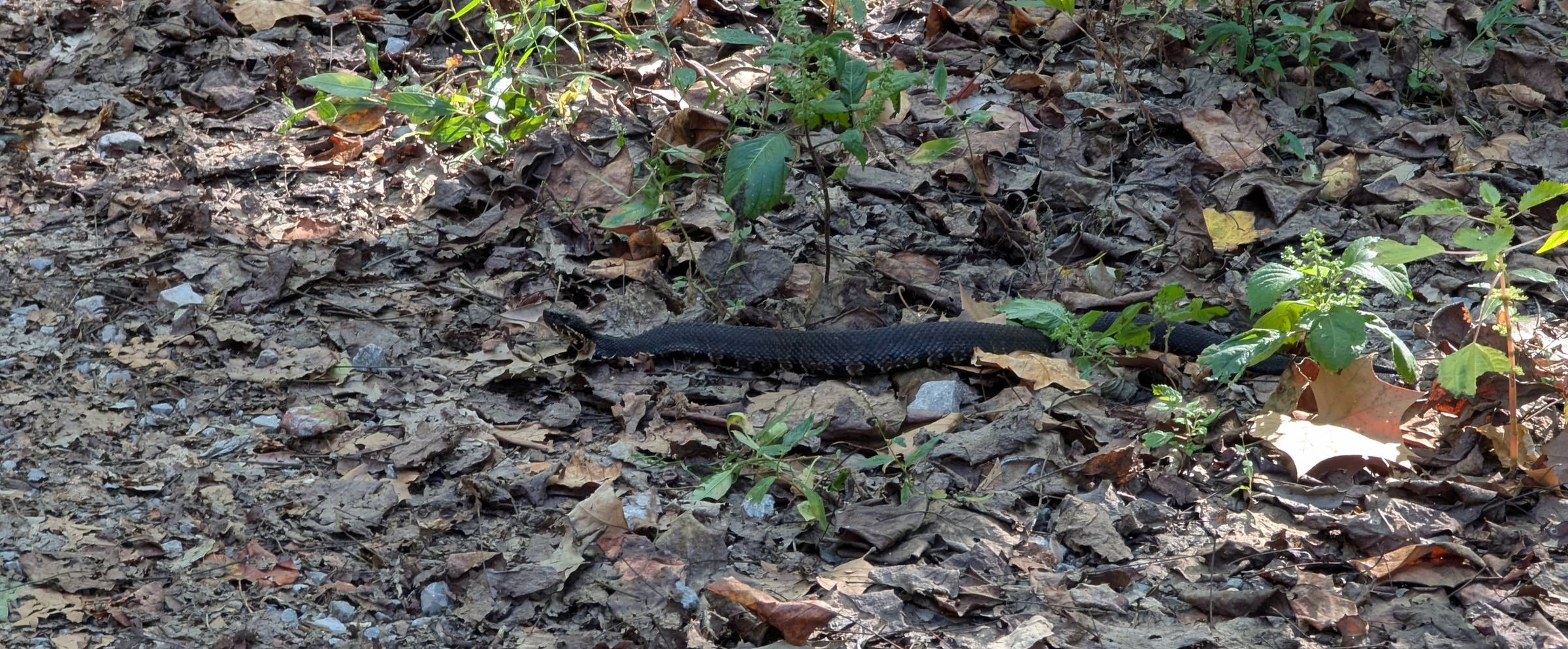 A cottonmouth along Snake Road at LaRue Pine Hills